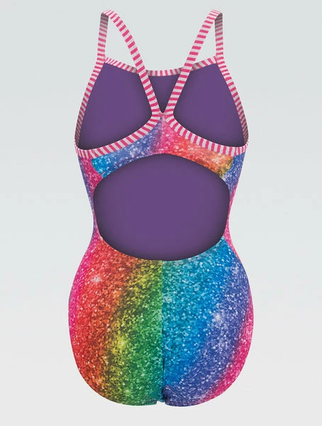 - Provides full coverage and durable keyhole silhouette with Uglies striped criss cross straps