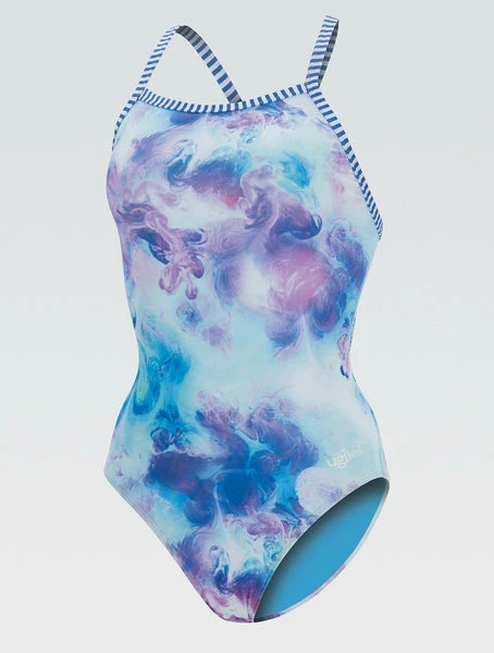 - Provides full coverage and durable keyhole silhouette with Uglies striped criss cross straps