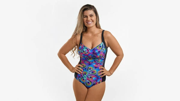 Fashion and function combine in this gathered style with flattering bust support and slimming panellinig to give you a streamlined look.