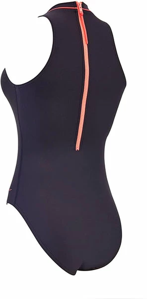 Zoggs’ Cable Zipped Hi Neck Swimsuit is like a second skin and is ideal for long outdoor swims and indoor training. Features include a high neck with exposed blue back zip allowing for greater coverage on the chest & back, high leg for greater freedom of movement and blue piping detail on the neck. A fashionable yet functional swimsuit for novices and pro’s alike and is made from Zoggs’ super soft, quick drying & chlorine resistant Hydrolife fabric.