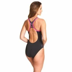 Dive into the new season in style and make waves with the Zoggs Pebbly Bandeau Crossback swimsuit. Featuring built-in foam cups for support that goes unnoticed, you won’t have to worry about anything other than enjoying your swim. The crossback design also offers flexibility through the back and shoulders so you won’t have to make any compromises with your stroke. This swimsuit is made from our innovative Ecolastâ„¢ fabric which is produced using recycled fish netting and other discarded materials.